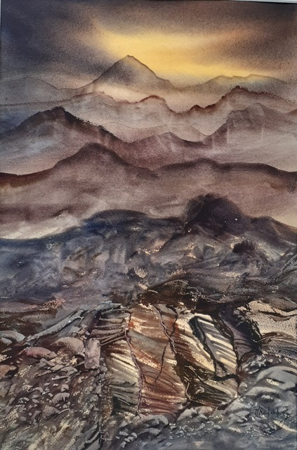 L'aquarelle me donne la paix mais aussi l’élan, avec ce médium on ne vit pas qu’à moitié ! La bataille est rude parfois, pas vraiment de droit à l’erreur,  se battre pour sortir de soi- même, pour exprimer  puissance ou douceur  et sortir des sentiers battus voilà ma recherche constante dans cet art difficile qu’est l’aquarelle.